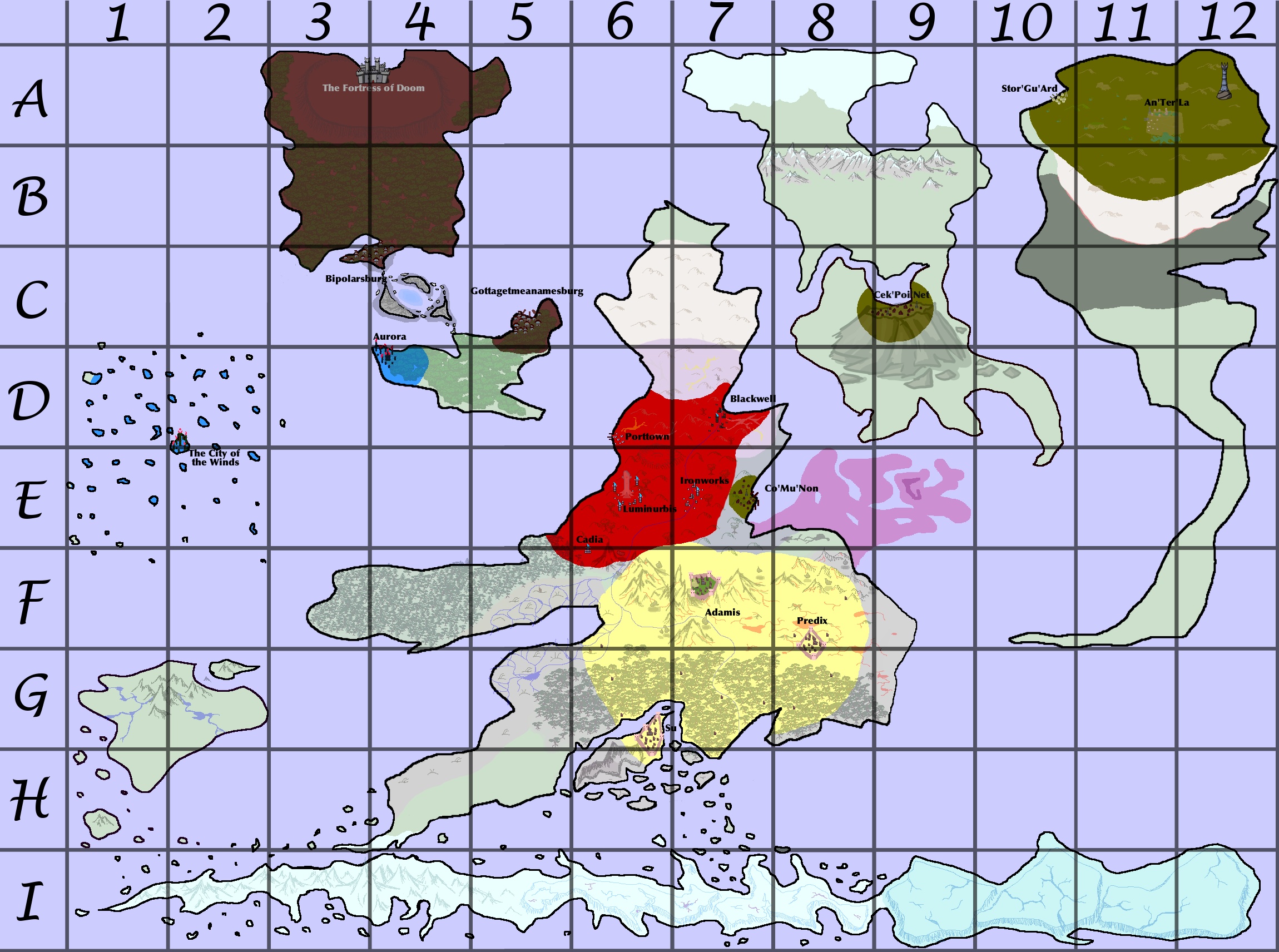 There were some bird people already on the island he wanted the fox-foxes to expand to, but they didn't seem very cold or capable of dropping rocks from the sky either, so also didn't view them as much of a threat. When fox-fox officials asked him for guidance, he just shrugged and told them to do whatever. He wasn't about to let the birds have the whole island though, so he told the fox-foxes to build another port town in the peninsula at C5.